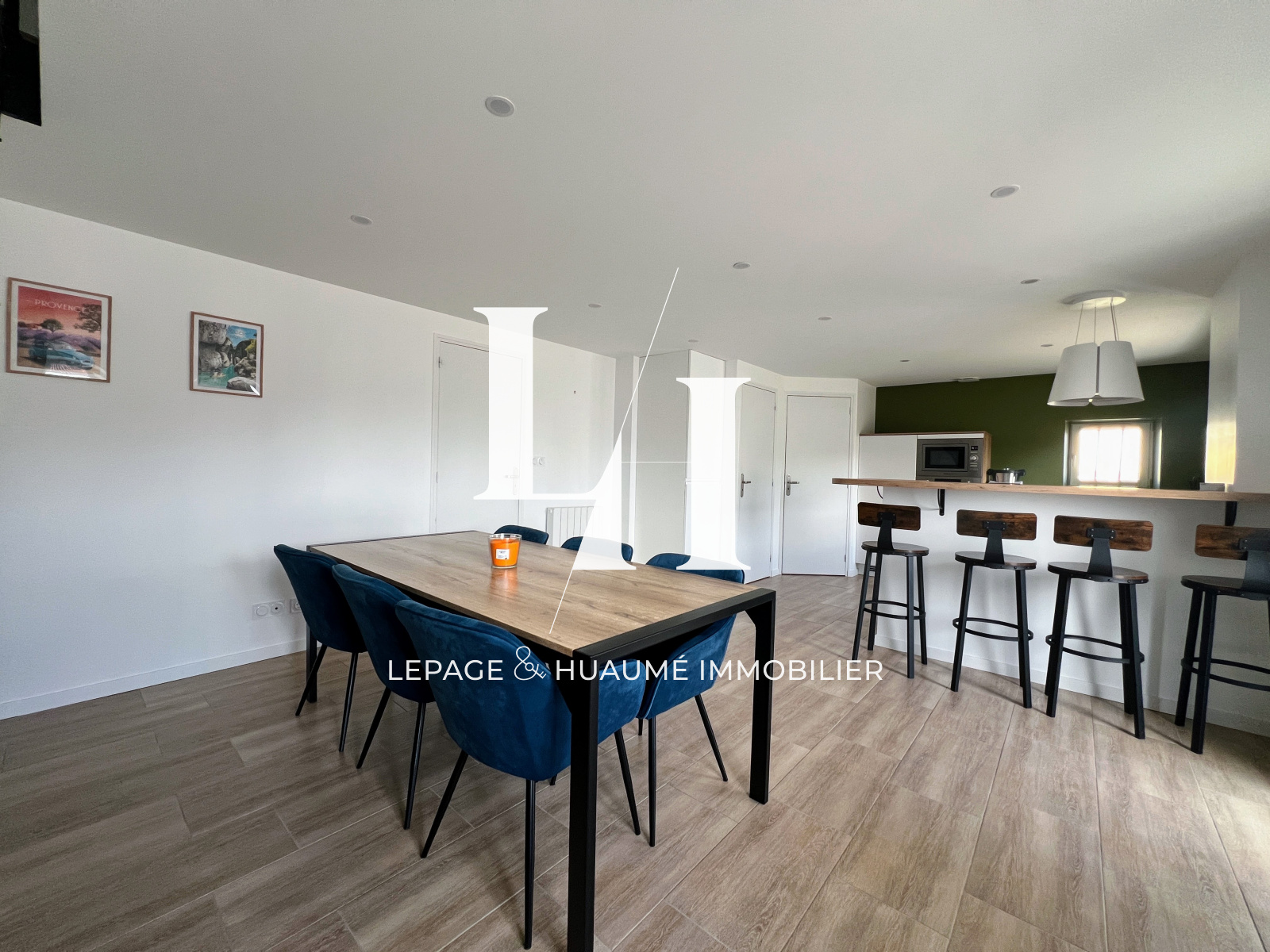 Dès l’entrée, vous serez séduits par une cuisine moderne, aménagée et équipée, ouverte sur un séjour agréable et lumineux.